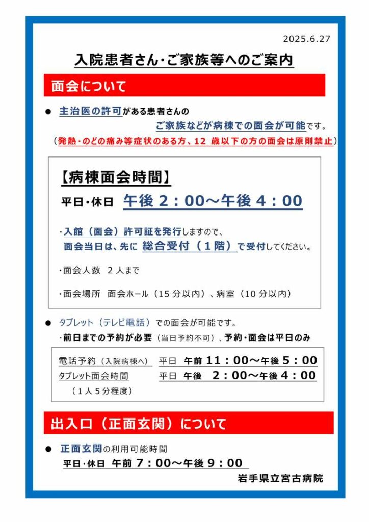 入院患者さん・ご家族等へのご案内(PDF、R7.6.27現在)